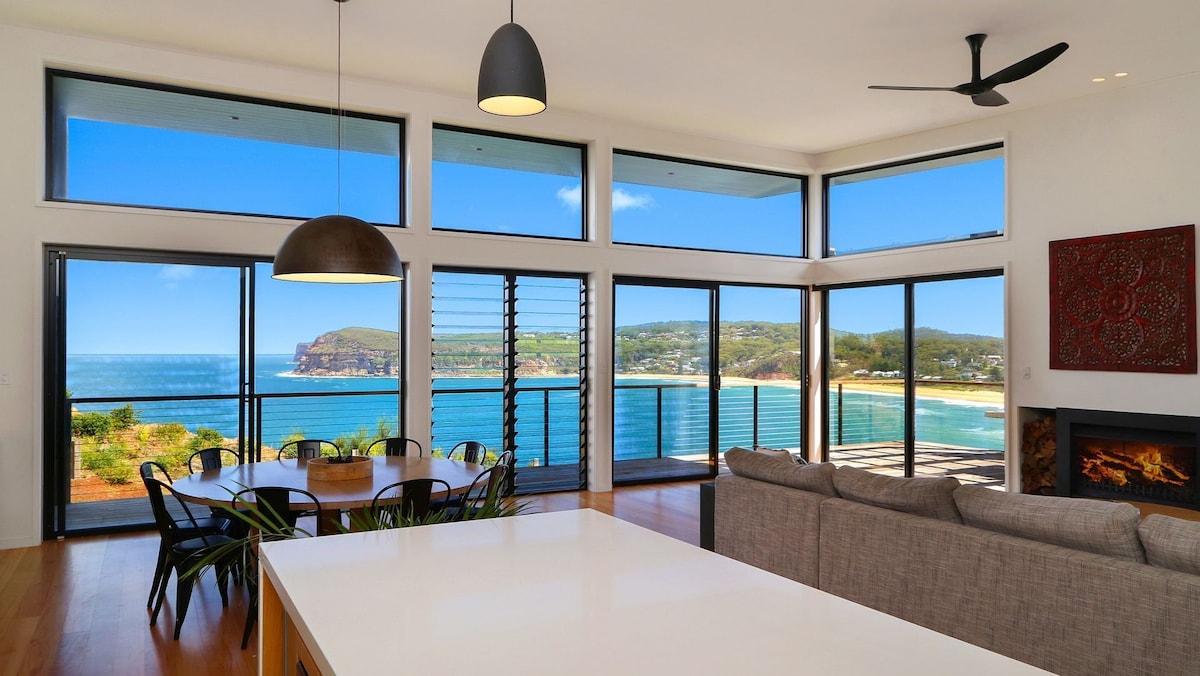 Escápate a Patonga House, un impresionante santuario ubicado en 10 acres de matorrales prístinos. Ubicada en una ladera adyacente al Parque Nacional, esta impresionante finca ofrece vistas a los ojos de águila sobre Patonga y el río Hawkesbury, además incluye una piscina de inmersión climatizada y una sauna panorámica al aire libre. La finca tiene una privacidad inigualable, pero está a sólo 2 minutos de la playa de Patonga y del emblemático Boathouse Hotel. También cerca, Pearl Beach, otro paraíso costero.