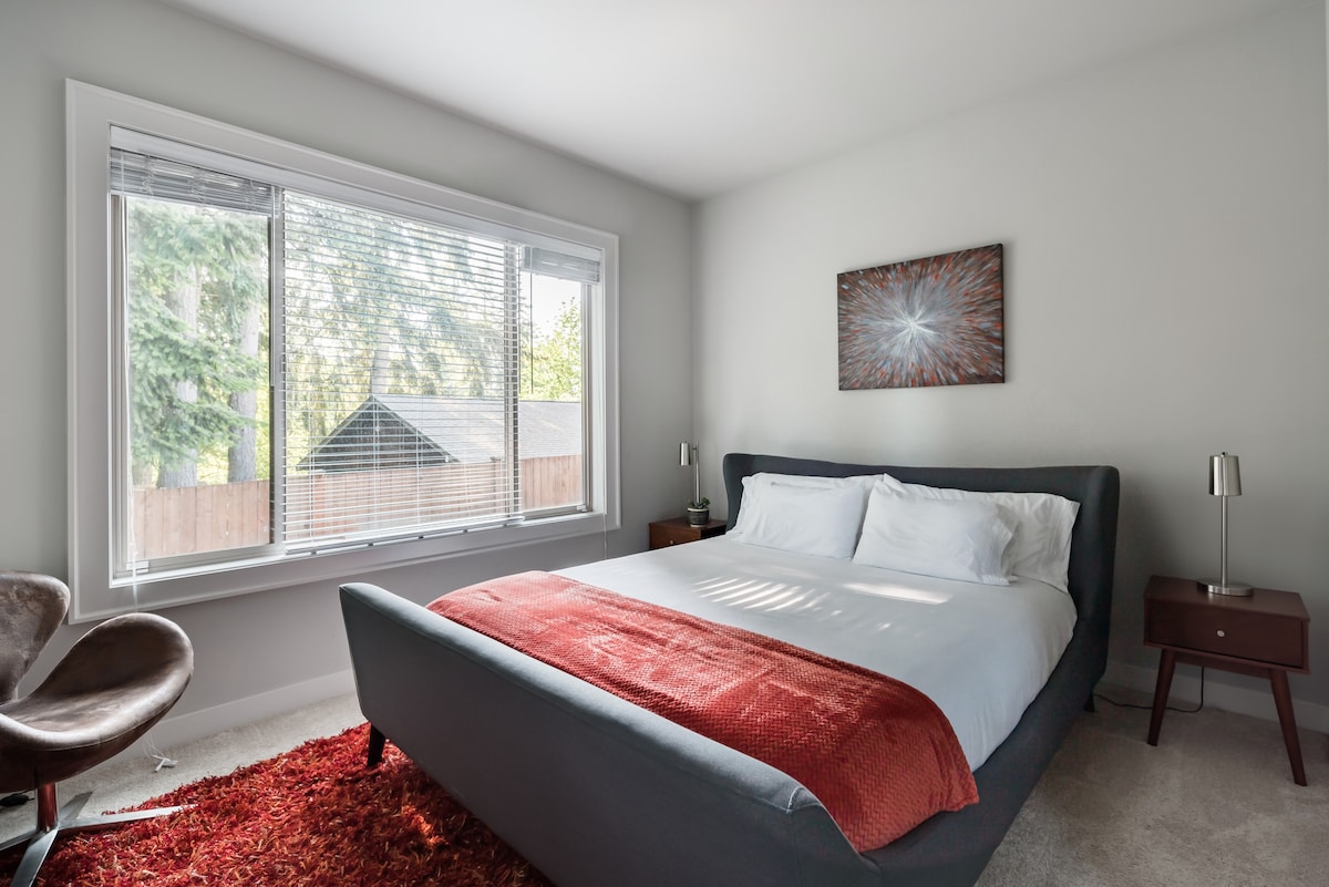 ¡NO FIESTAS! Ubicación céntrica con fácil acceso a Seattle, Bellevue y las principales ciudades circundantes. Cocina en una espaciosa cocina bien surtida con superficies de hormigón pulido. Reúnete alrededor de una mesa moderna con tapa de vidrio en el patio para cenar al aire libre. Después, disfruta de cócteles después de la cena junto a una elegante chimenea en medio de los modernos accesorios de la sala de estar. Esta casa tiene capacidad para 20 personas y fue diseñada específicamente para familias, viajeros en grupo y fiestas de bodas. Te resultará difícil salir de las cómodas camas Temperpedic con sábanas celestiales. ¡NUNCA hay cámaras interiores en el alojamiento!