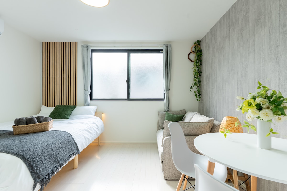Estudio Japandi tranquilo y nuevo|Cerca de JR・metro|Lavadora y secadora|Ascensor|Almacenamiento de equipaje