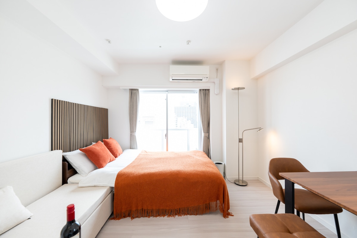 Acori Asakusa is a self-check-in studio, just an 8-minute walk from Asakusa Station and close to popular spots like Kaminarimon Gate, Senso-ji Temple, and Tokyo Skytree. The room is a clean, calm space with thoughtfully selected furniture and premium bedding. High-speed Wi-Fi and air conditioning make it well-suited for both short and extended stays. A full kitchen, washer-dryer, and ceiling projector round out a comfortable base in central Tokyo.