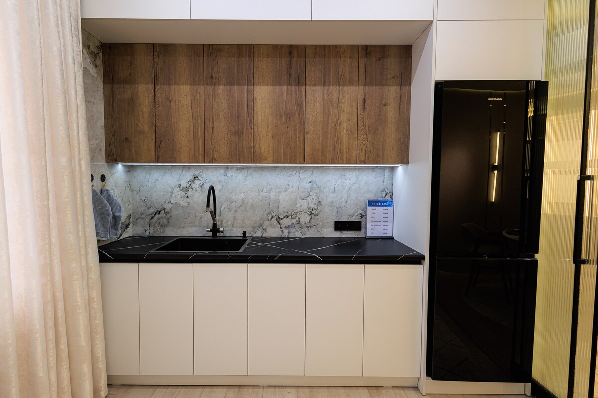 Nuevo departamento DE diseño de LUJO en el corazón de la ciudad. El departamento lo cuenta todo para una estancia cómoda: estufa y platos, lavavajillas, horno incorporado, horno microondas, 2 televisores INTELIGENTES, wifi de alta velocidad, muebles modernos y caros, cama doble tamaño king con colchón ortopédico. Todos los huéspedes están provistos de: suministros de higiene, té, té, café. Se requiere un pasaporte para registrarse. No se acepta fumar ni mascotas.