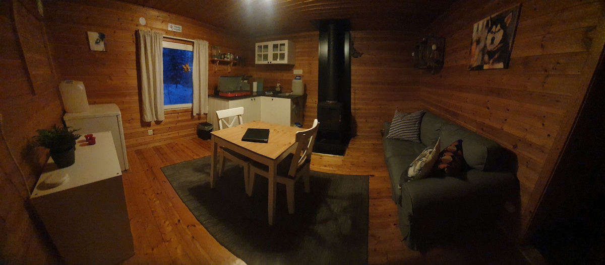 La cabaña está en un pequeño pueblo llamado Moskojärvi en sueco Laponia. La cabaña tiene electricidad. Pero no hay agua corriente. Se proporcionará agua en botes. No hay baño, pero tiene una sauna de leña climatizada, donde se puede ducharse. El inodoro es un inodoro exterior "seco". La cocina tiene nevera y cocina de inducción. La cabaña tiene una estufa de leña. Proporcionamos madera, pero no calentamos la cabaña. Se encuentra junto a mi casa, vivo con mi novio y nuestros 23 husky.