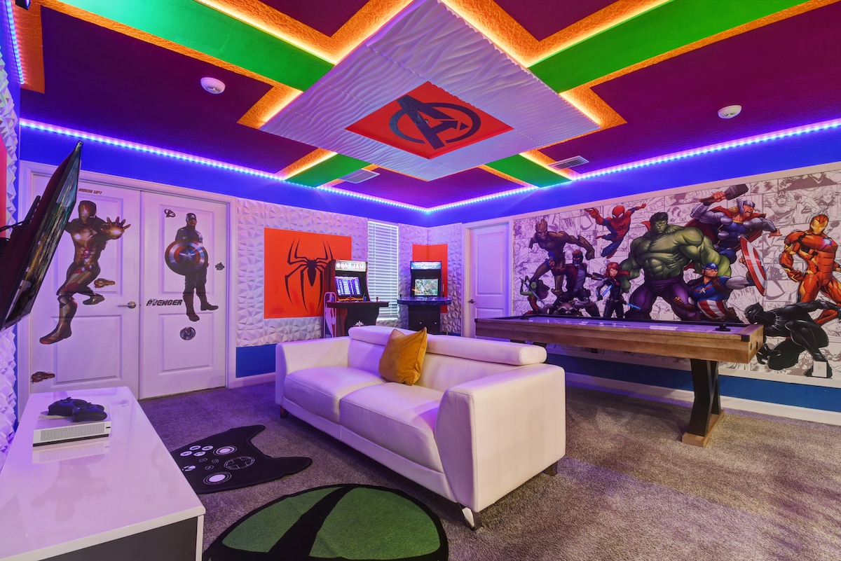 Esta impresionante villa de Storey Lake Resort es la escapada perfecta para relajarse y disfrutar de su tiempo en Orlando, Florida. A pocos minutos de Disney World y cerca de atracciones, tiendas y restaurantes. Esta inmaculada y excepcional villa tiene una piscina climatizada y un spa (sin cargo adicional) para relajarse después de un ajetreado día en los parques. Ideal para familias, con dormitorios de Super Mario y Frozen, así como tres dormitorios tamaño king, junto con un loft temático de Harry Potter y una sala de juegos temática de Spider-Man.