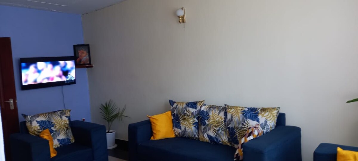 -This listing combines a bright and spacious 2BR and a private studio unit next door, offering 4 beds making it ideal for families or any groups visiting in Kisumu’s most central neighborhood. - The 2BR includes comfortable bedrooms with the master as en-suite and bathroom attached to the second bedroom, kitchen and a living area while the studio provides a private sleeping space with a kitchenette and bathroom. -Quiet, easy check-in w smart locks, free parking, garden seating, 24/7 security.