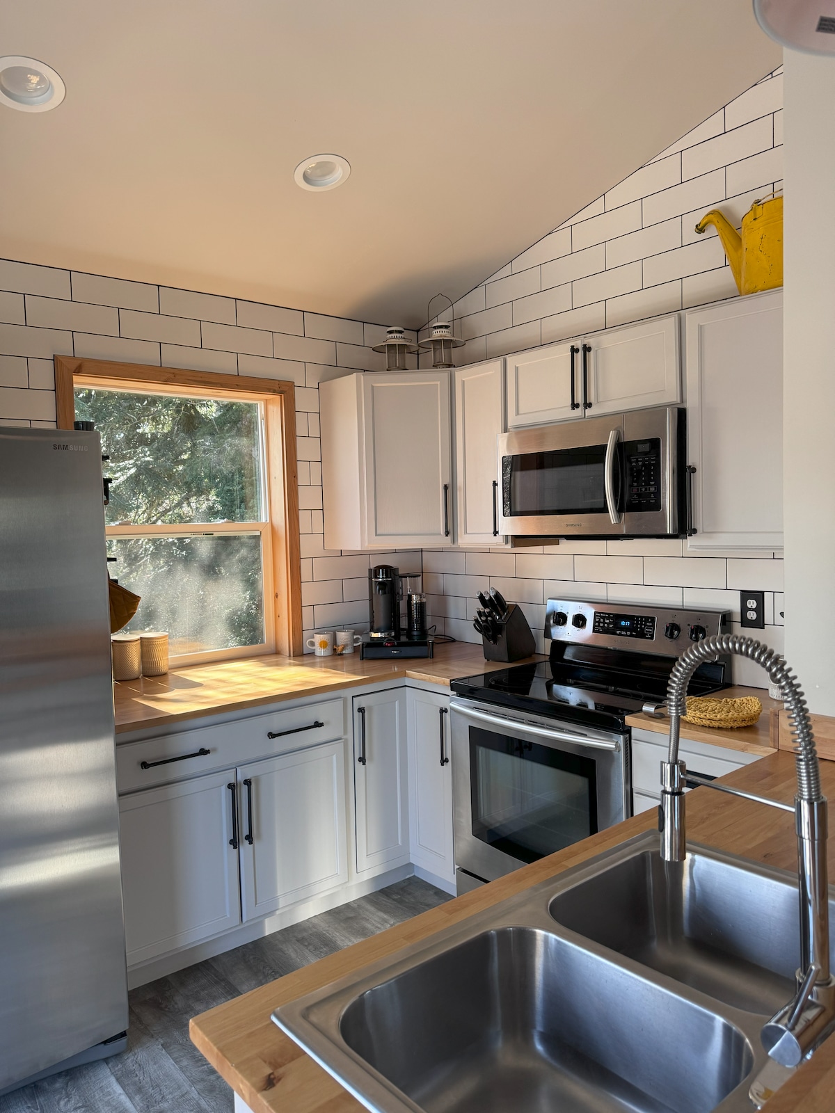 «The Shedd» solía ser un cobertizo antes de que nuestro arquitecto se apoderara de él y lo convirtiera en un refugio para escribir, leer y dormir la siesta. La casa de huéspedes de 800 pies cuadrados tiene un dormitorio, baño con ducha a ras de suelo, pequeña cocina, comedor, sala de estar, escritorio, wifi y aire acondicionado. A pesar de que está a solo 7 minutos a pie del pueblo, nuestro alojamiento está respaldado por la naturaleza, con excelentes vistas a la montaña Tumwater y a Icicle Ridge. Lo mejor de todo es que The Shedd tiene muchas ventanas y mucho aire fresco y luz natural.