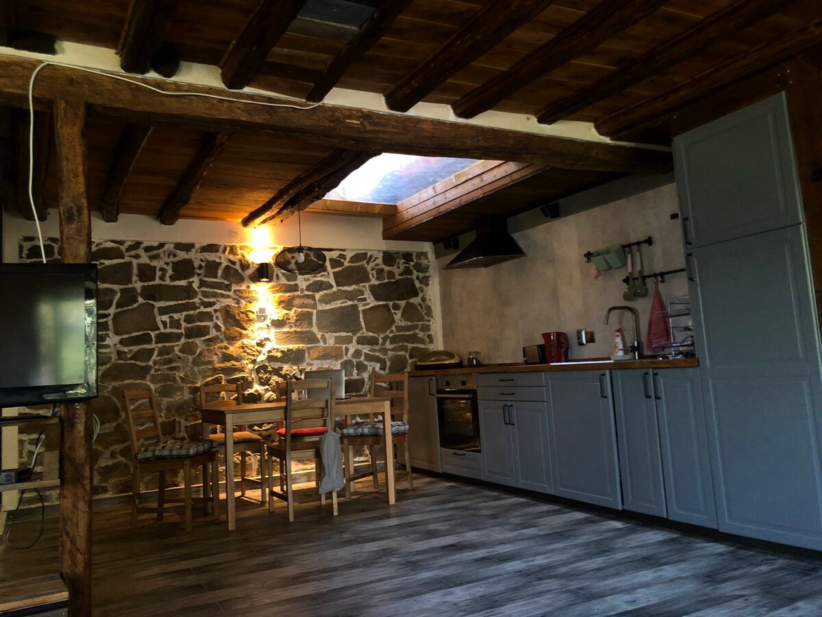 Esta encantadora casa ofrece una escapada tranquila en plena naturaleza. Se calienta con una estufa segura y hay leña lista para usar. Hay cuatro gatos y un perro en la casa, por lo que no podemos aceptar mascotas adicionales. Puedes caminar por el sendero del bosque y disfrutar de la naturaleza con el arroyo que fluye. En el patio trasero hay un columpio donde puedes disfrutar de la tranquilidad y un espacio donde puedes recoger verduras frescas. Su estancia es completamente privada y ofrece una experiencia tranquila. ¡Disfrute de la naturaleza!