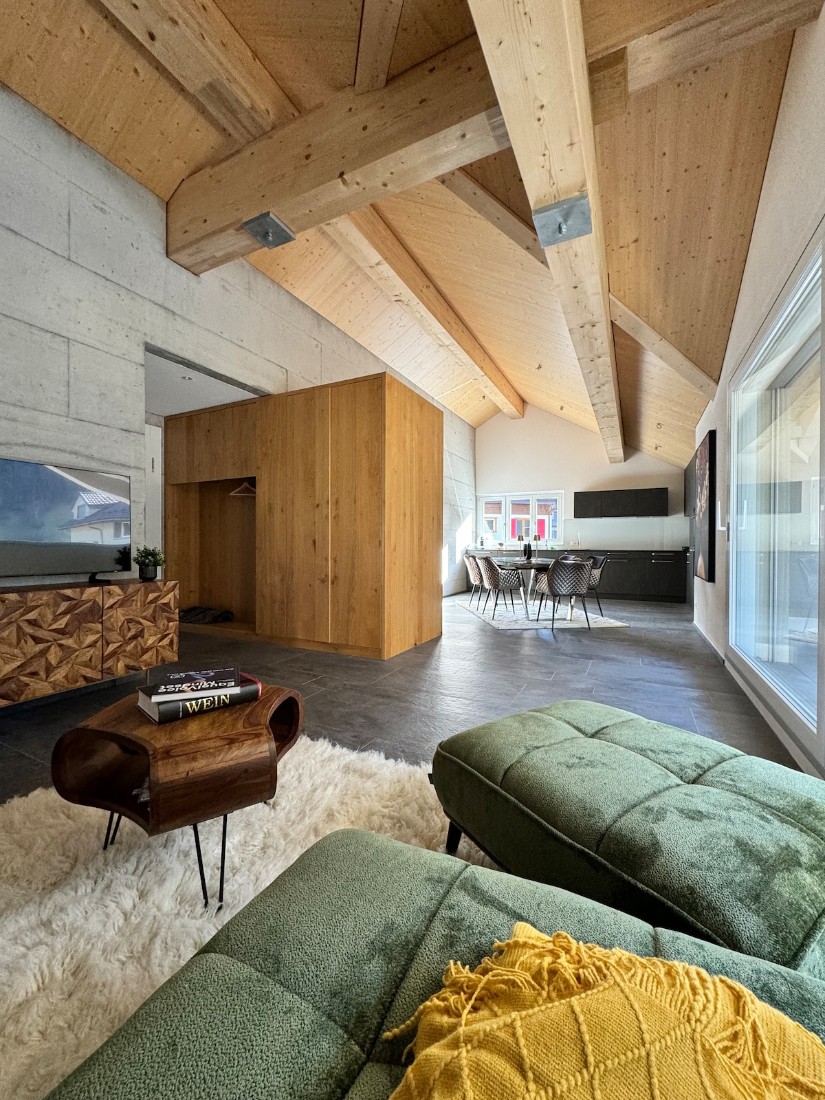 El romántico «CHALET EGGLEN» se encuentra justo encima del lago Thun en Sigriswil, en una ubicación absolutamente privilegiada, en medio de un barrio suizo intacto. El chalet ofrece privacidad con impresionantes vistas de postal del lago Thun y las montañas circundantes. Desde cada ventana puedes disfrutar de una vista abrumadora sobre el lago Thun. En el lado sur hay 2 balcones, bañera de hidromasaje, sofá, mesa de comedor y parrilla. En el lado norte encontrarás 2 espacios de estacionamiento privado.