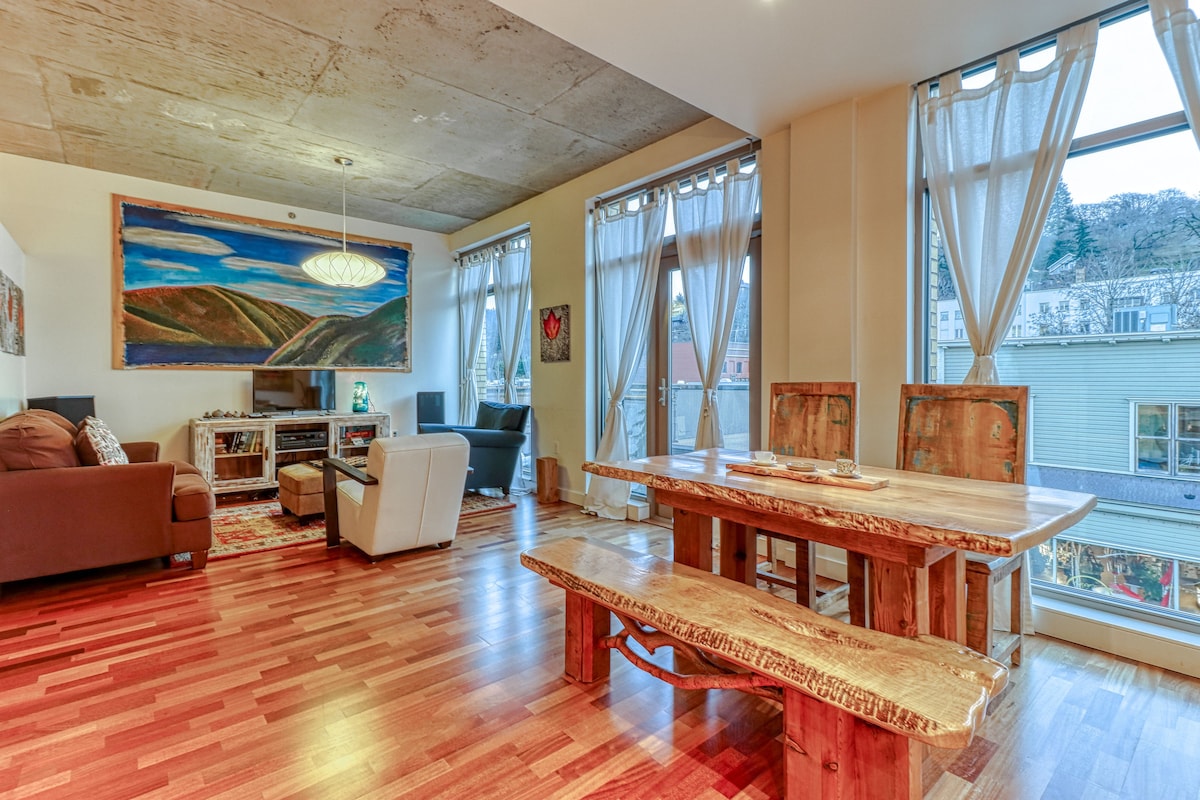 Welcome to Oak Street Loft — a bright, light-filled downtown condo where you can step outside and immediately experience the best of Hood River. Walk to coffee, restaurants, breweries, and shops, then return to a comfortable, modern space designed for relaxing after a full day exploring the Gorge. Located above one of Hood River’s most popular coffee spots, this condo puts you right in the center of town. Start your morning with a latte downstairs, spend the day hiking, biking, or on the river, and end the evening just steps from some of the area’s best dining. Hood River is known as one of the Pacific Northwest’s top outdoor destinations — famous for world-class kiteboarding and windsurfing on the Columbia River, incredible hiking and biking trails, and the scenic Fruit Loop filled with orchards, wineries, and seasonal farm stands. Whether you're here for adventure or a relaxed getaway, this location gives you direct access to it all. Inside, the condo features an open loft-style layout with large windows that bring in natural light and views of downtown. The living area offers comfortable seating, a TV for winding down, and a dedicated workspace for remote stays. The kitchen is fully equipped with stainless steel appliances, making it easy to cook meals when you’re not enjoying the many restaurants just outside your door. A dining table provides space to gather, eat, or plan your next day. Sleeping Arrangements Queen bed in open sleeping area Twin-over-twin bunk bed Twin trundle bed Please note: This is an open loft layout with no enclosed bedrooms or privacy doors between sleeping areas. What You’ll Love True downtown location — walk to restaurants, coffee, breweries, and shops Bright, open space with large windows and city views Fully equipped kitchen with modern appliances Dedicated workspace for longer stays In-unit washer and dryer Elevator access for easy entry Quick access to Hood River waterfront and outdoor recreation Location Highlights Steps to downtown Hood River dining, shopping, and nightlife Walk or short drive to the waterfront — kiteboarding, windsurfing, and beach access Minutes to the Columbia River Gorge for hiking and scenic views 10 minutes to Post Canyon mountain biking trails Access to the Hood River Fruit Loop — farms, wineries, and orchards 40 minutes to Mt. Hood Meadows for skiing and winter recreation Important to Know Open loft layout — no enclosed bedrooms or privacy doors Garage parking is limited to compact vehicles only Larger vehicles must park on nearby street parking (several blocks away) No pets allowed No parties or events No smoking No commercial photography Maximum occupancy: 5 guests (all ages included) Must be at least 21 years old to book Stay in the heart of Hood River, walk everywhere, and experience the Gorge like a local — book your stay at Oak Street Loft today.