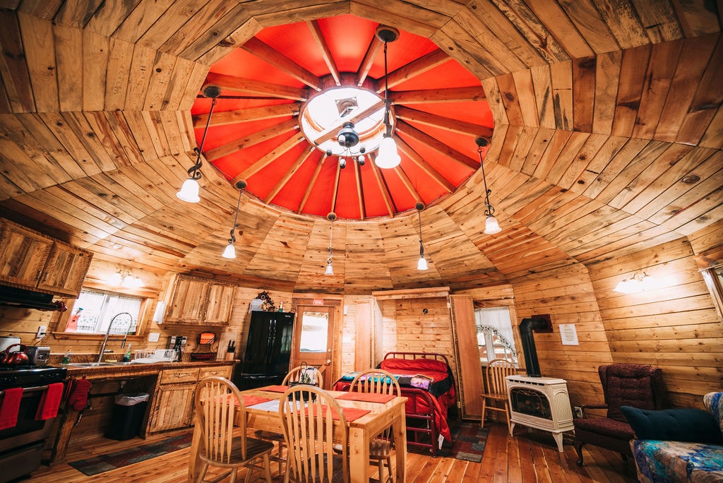 You won’t forget your time in this romantic, memorable place. A large comfy 14’X16’ safari tent on a deck 4.5’ off ground to take you away from it all! Luxurious King sized bed with memory foam mattress and a leather sofa bed. We are off grid so we provide a WOOD STOVE, wood bundles are $5 each, propane heater and power station provided for lights and charging your electronics. Extra guests after 2 are $15 pp. a night. Please let me know if you need more bedding beyond the first two guests.
