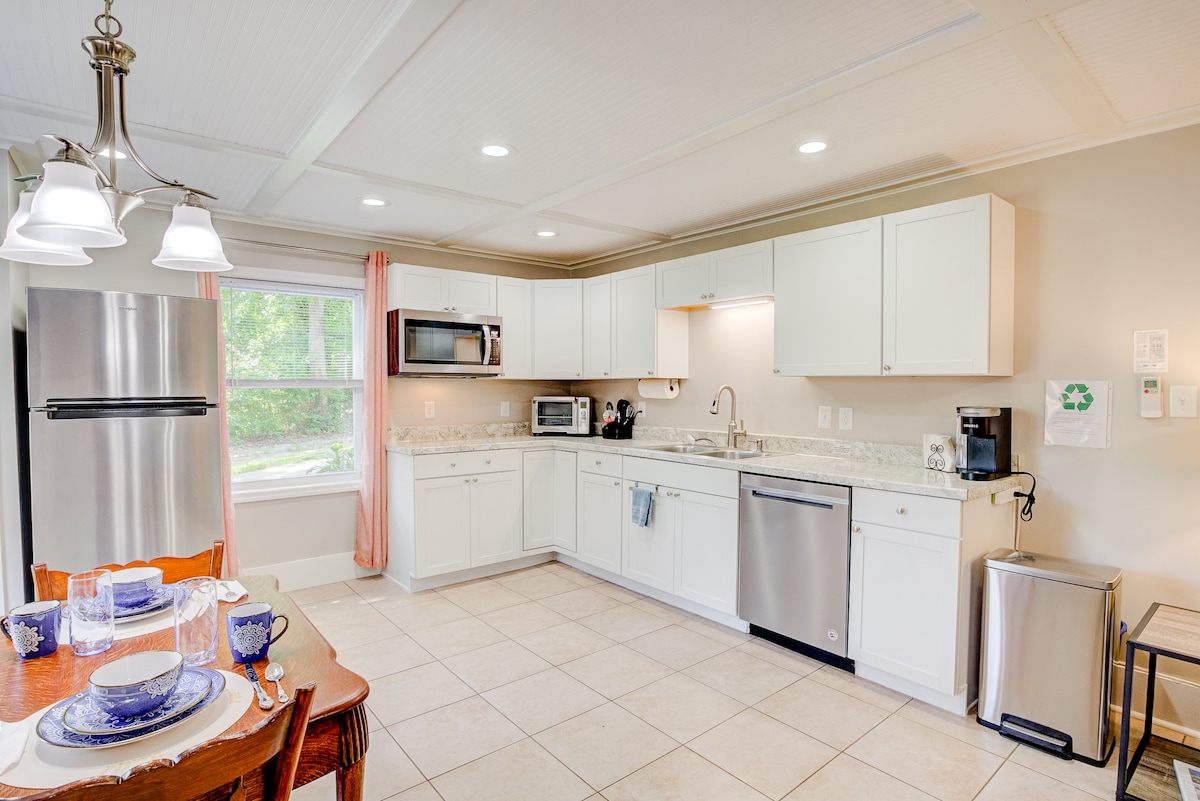 Bienvenido a nuestro Sunsphere Studio, un espacio para recargar energías en una calle tranquila a pocos minutos de la interestatal. Nuestra casa está cerca de todo lo que puedas desear: cafeterías, restaurantes, cervecerías, boutiques y un parque con un sendero pavimentado. Encuentra tu escapada en nuestra NUEVA suite de invitados equipada con una cama tamaño king, sábanas de algodón orgánico, persianas opacas, máquina de sonido, cocina pequeña, baño de gran tamaño y aperitivos de cortesía (imprescindibles). Para todos nuestros AFICIONADOS AL FÚTBOL: ¡estamos a solo 5 millas del estadio!
