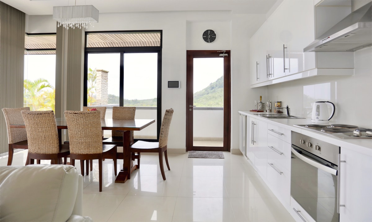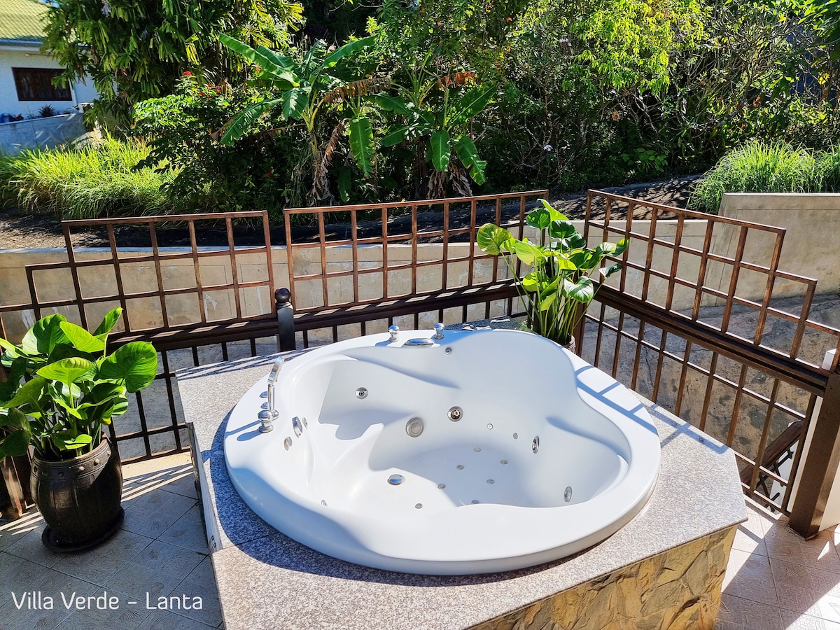 Villa Verde es una villa amplia y decorada con buen gusto que ofrece unas vistas impresionantes del mar y de islas como, Koh Phi Phi y unas puestas de sol espectaculares. En una zona muy tranquila, pero a solo 5 minutos de la gran Pra Ae/Long Beach. La villa dispone de dos dormitorios y una cocina moderna con vistas al mar, un gran salón y una gran terraza privada con jacuzzi. La superficie habitable es de unos 100 m² + 70 m² de terraza. Se puede utilizar una PISCINA con sistema de contracorriente en la casa de detrás.