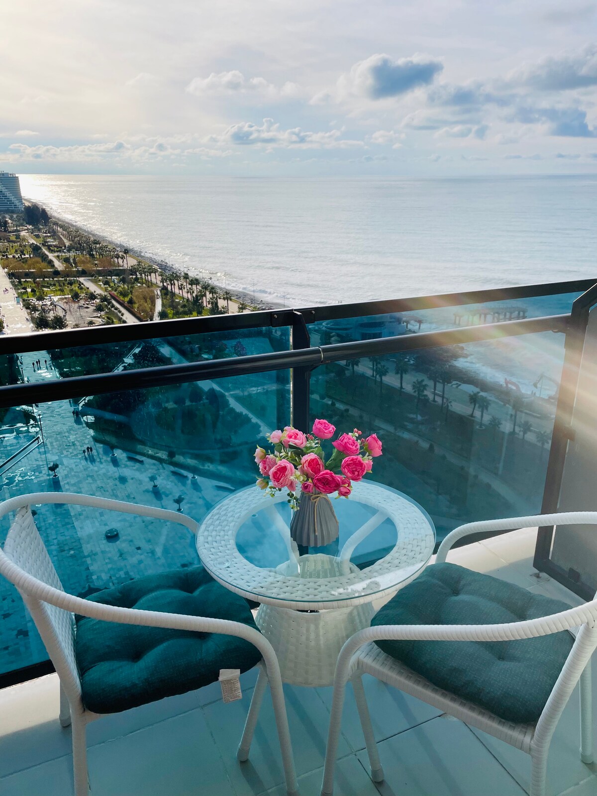 Панорамный вид, высота окон 5 метров, современный ремонт, высококлассная мебель и техника. Все это будет сопровождать Вас во время отдыха в Батуми. Каждый день Вы будете просыпаться с ошеломляющим видом на море непосредственно с кровати. Вы будете выпивать утренний кофе в компании с ласковым морем. А вечером, с друзьями Вы будете встречать закат, находясь на большом диване, с комфортом и с бокалом грузинского вина в руке. Эти апартаменты откроют Вам новый вид отдыха. Почувствуйте "Вид на Море".
