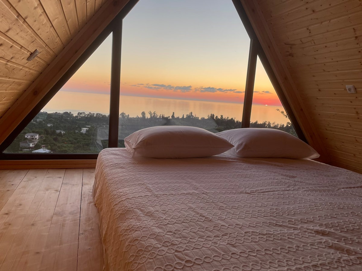 Hermosa casa de madera con comedor exterior, ubicada cerca de Buknari/Tsikhisdziri. Está cerca de la carretera central, fácil de encontrar. Todos los huéspedes de esta casa pueden disfrutar de un entorno tranquilo y vistas increíbles al atardecer todos los días. La playa está a 2 kilómetros de la casa, también hay un restaurante en la playa.