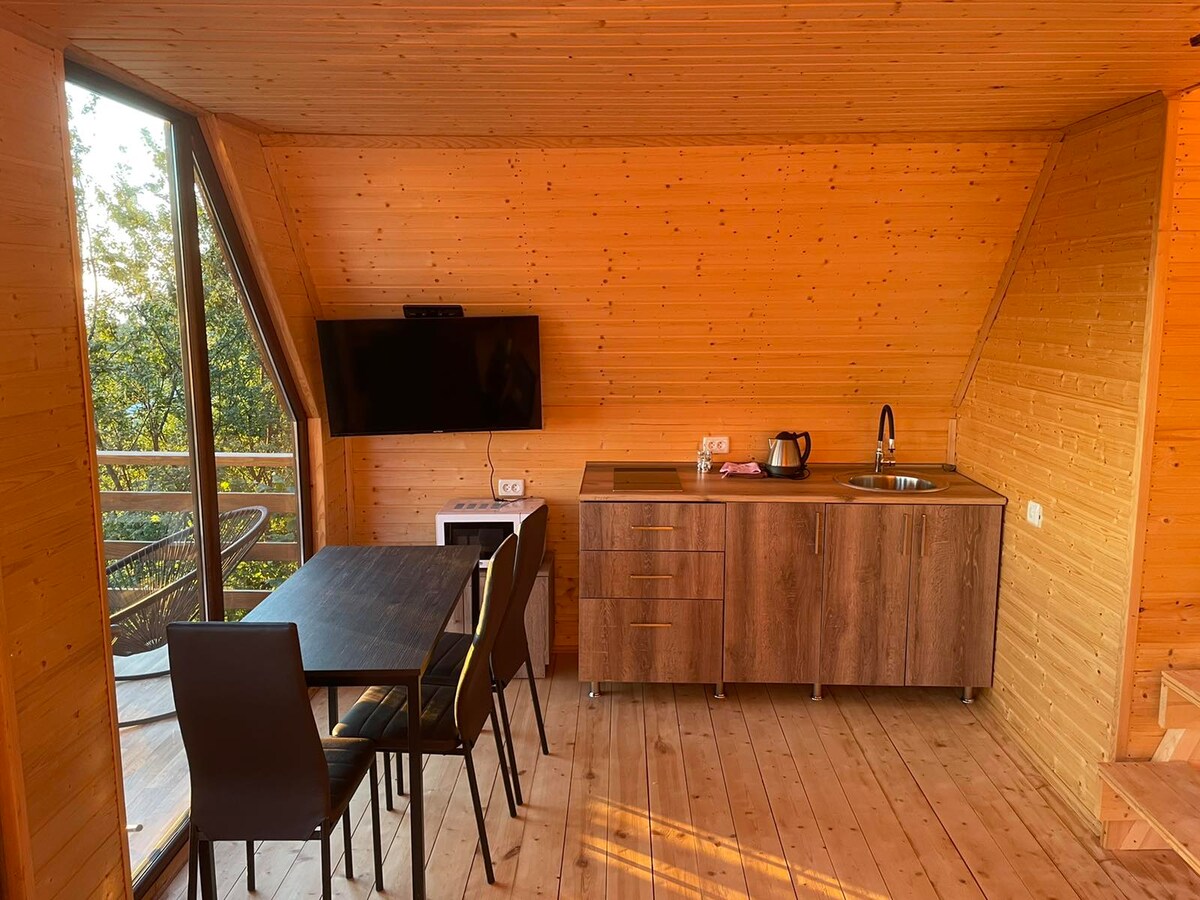 Crea recuerdos en este lugar único y familiar. Gomarduli Cabins ofrece a sus huéspedes una puerta de entrada desde la concurrida vida de megápolis en medio de la impresionante naturaleza, el aire fresco y las increíbles vistas panorámicas. Aquí puedes olvidarte de todo menos de ti. Puedes mimarte con una increíble comida regional auténtica bajo petición o solo una taza de té caliente en el enorme balcón con vistas panorámicas privadas. ¿Por qué es único? Porque no hay nada frente a nosotros, excepto montañas increíbles...