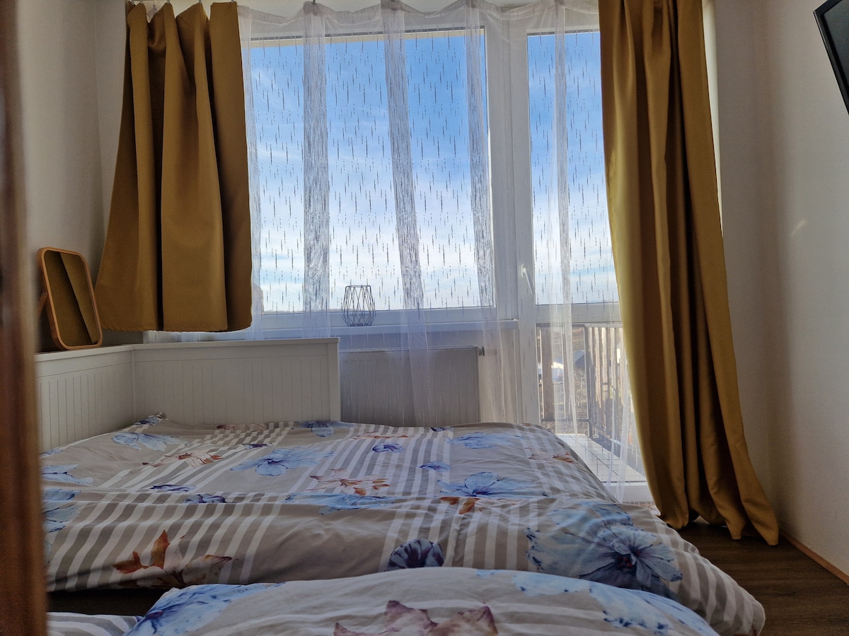 ¡Bienvenido a nuestro moderno apartamento! Situado en una calle tranquila en el corazón de la ciudad, ideal para parejas, viajes de negocios o familias con niños. El apartamento ofrece un dormitorio con cama de matrimonio, una sala de estar con sofá cama, una cocina totalmente equipada y un baño moderno. Hay conexión Wi-Fi gratuita, TV, lavadora, secadora y aparcamiento. Cerca de atracciones turísticas, restaurantes y transporte público. Check-in y check-out rápidos y sin contacto, se admiten mascotas. ¡Venga a disfrutar de la comodidad y el estilo!