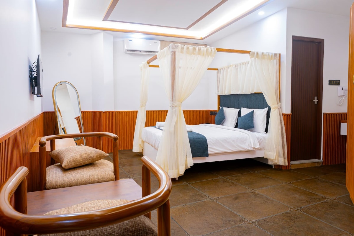 The Superior Room at The Old Courtyard Hotel offers spacious comfort with rich wooden floors, antique furniture, and high ceilings that reflect the charm of our 200-year-old heritage building. Choose between a double or twin beds, with mosquito nets and windows overlooking the courtyard or quiet lanes. Rooms include AC, tea/coffee maker, filtered water, Wi-Fi, and attached bathrooms with hot water and hair dryer.