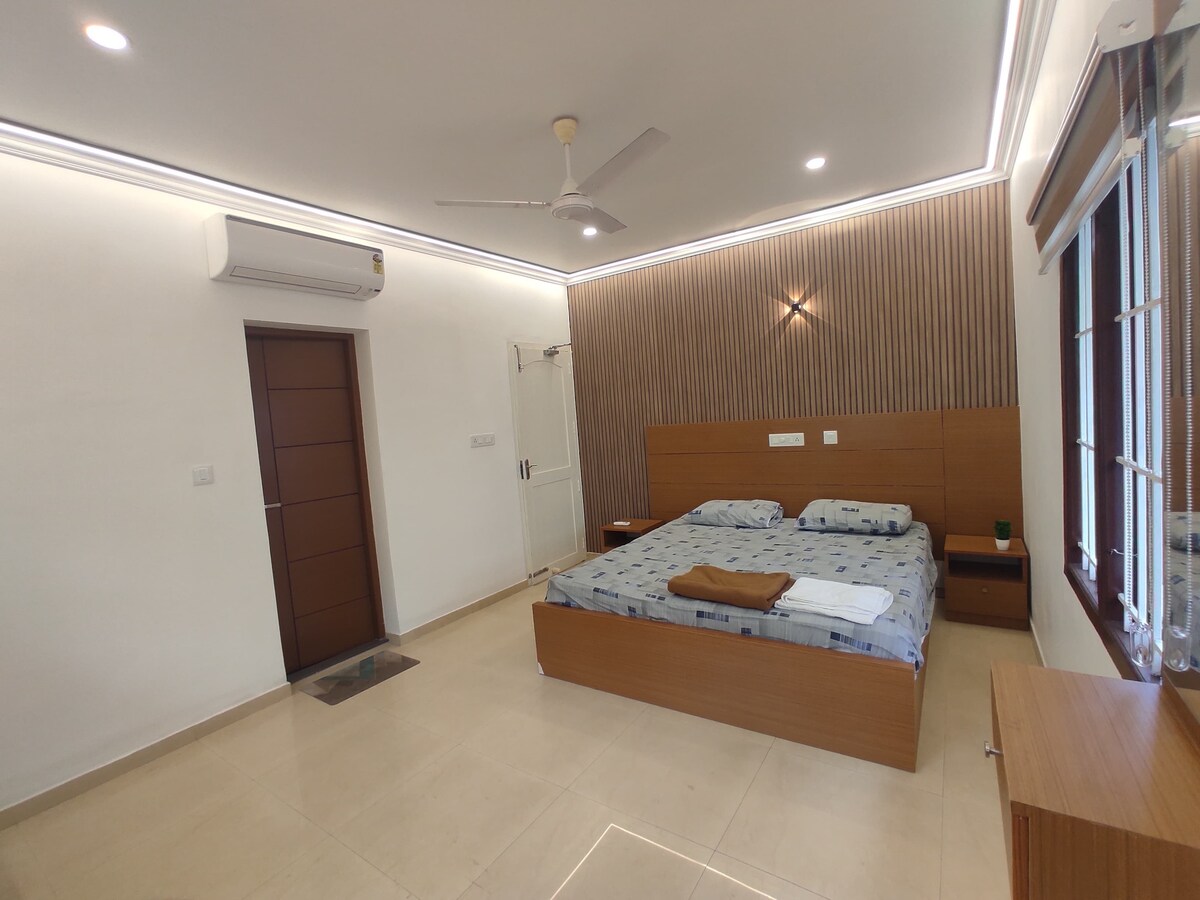 Te damos la bienvenida a The Haven. Este es un apartamento de 3 dormitorios totalmente amueblado en el primer piso con entrada privada, dormitorios con aire acondicionado, televisores inteligentes, cocina abierta, salón separado y wifi de alta velocidad. La casa incluye una lavadora, aparcamiento cubierto y un sistema de alimentación de reserva. Ubicado en Maradu, está a pocos minutos de Fort Kochi y de las principales atracciones de la ciudad. Ideal para una estancia tranquila y conectada.