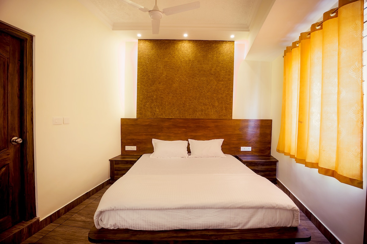 Experience the perfect blend of modern sophistication and Coorg’s serene charm in this stylish one-bedroom apartment. Located on Ponnampet Road, you are less than one kilometer from the heart of Gonikoppal, offering the ideal balance of quiet privacy and easy access to local cafes, markets, and transport.