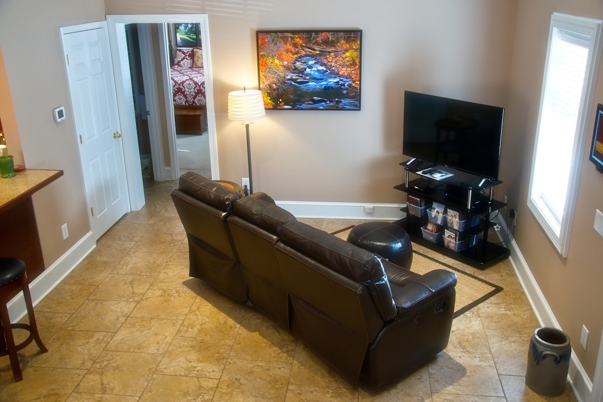 ¡Bienvenido! Nuestra suite Boho es espaciosa, acogedora y privada, con internet de fibra gigabit. ¡Entrada privada también! En el salón, puedes ver Netflix en la televisión o trabajar en el escritorio. Luego, cuando sea hora de dormir, puedes ir al dormitorio, cerrar la puerta del establo y acurrucarte en la cama. Despiértate renovado por la mañana con nuestra estación de café (Keurig, nevera y microondas). Estamos ubicados en un barrio seguro y tranquilo que está a poca distancia en coche de cualquier lugar del Triángulo. ¡Nos encantaría recibirte!