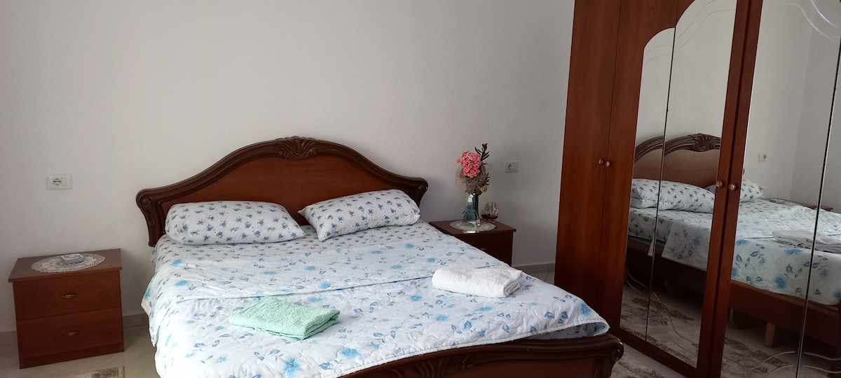 Bienvenido a nuestro moderno apartamento con habitaciones cómodas y balcones privados. Situado en el centro de la ciudad, a solo 3 minutos a pie de la zona peatonal de Korca y de la catedral. A 4 minutos a pie del antiguo bazar, lleno de encantadores restaurantes y bares. No necesitarás coche para explorar las principales atracciones de la ciudad. Recientemente hemos completado una renovación completa, asegurando que todas las habitaciones estén equipadas con aire acondicionado, calefacción y televisores para tu comodidad. Estamos deseando que tu visita sea inolvidable.