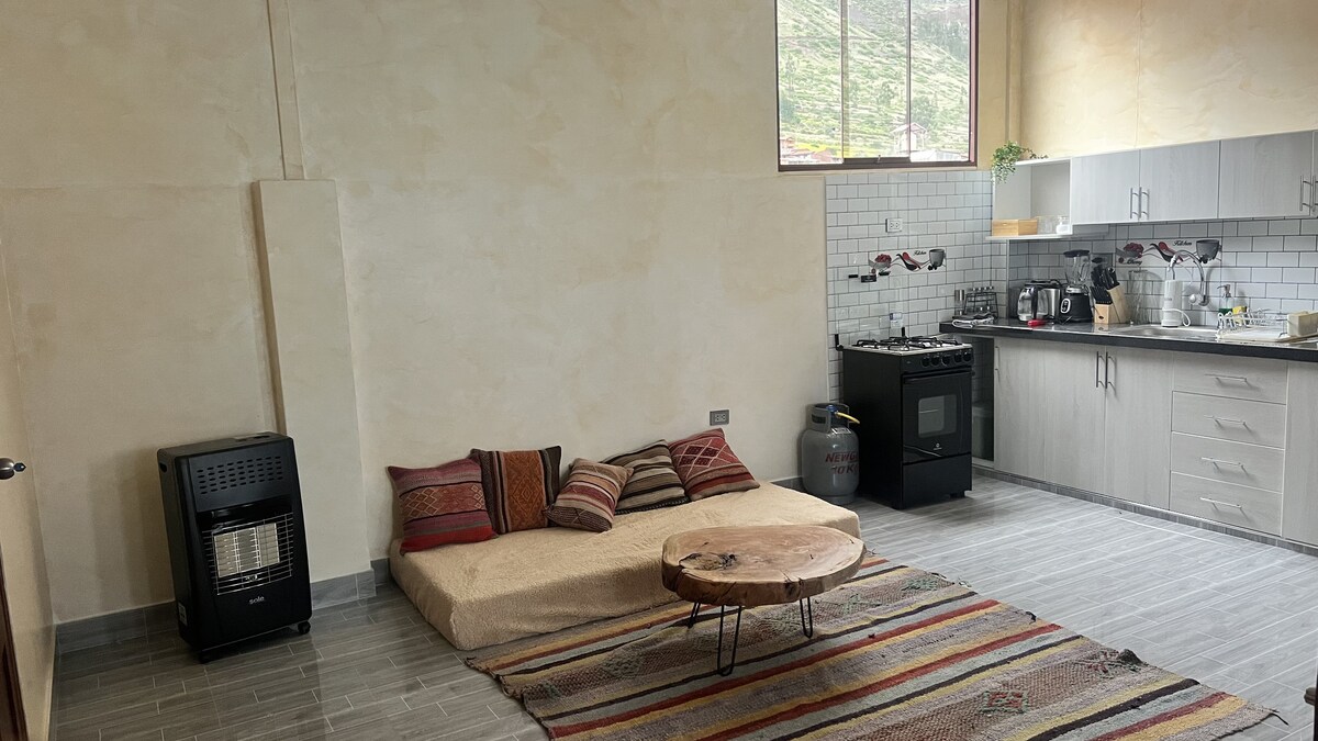 Disfruta de este lujoso y acogedor apartamento privado, con una hermosa vista desde la habitación, relájate en tu propio balcón, también con baño privado y jacuzzi propio, la cocina es moderna y súper cómoda, la sala de estar y el comedor están totalmente amueblados , la cocina está totalmente equipada con todo lo necesario para tu estancia, conéctate sin problemas con el internet de fibra óptica de alta velocidad. ubicado en uno de los lugares más solicitados del valle sagrado, Pisac "La Rinconada".