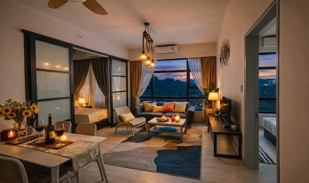 ¡Te damos la bienvenida a la capital bajo el viento, Kota Kin, Sabah! Nuestro apartamento premium se encuentra en una ubicación privilegiada en el corazón de Kin Kinabalu con una magnífica vista de God Hill desde la propiedad, lo que te da un buen estado de ánimo para despertarte todos los días.Si quieres ver la increíble vista al mar, la puesta de sol y la ciudad, puedes ir a la piscina infinita en el undécimo piso del apartamento, que tiene una amplia vista y es el mejor lugar para ver la puesta de sol. Siempre y cuando pases el SkyBridge, puedes llegar directamente al centro comercial Imago, que es conveniente para ir de compras, comer, entretenerte. Monte frente a la 🏙 casa Piscina infinita en🌅 la planta 11 con vistas al mar, al atardecer y a la ciudad Se proporciona una plaza de aparcamiento 🅿️ gratuita Hay una tienda de conveniencia abierta las 24 horas y muchos restaurantes en la planta 🛒 baja. 🚗 A solo 10 minutos del aeropuerto Wifi 📶 gratis, Netflix, purificador de agua Cuckoo Piscina 🏊♀️ infinita en la undécima planta para pasar un rato agradable ¡Los visitantes de todas partes son bienvenidos a experimentar una estancia cómoda y conveniente y sentir el encanto único de Kota Kinabalu!