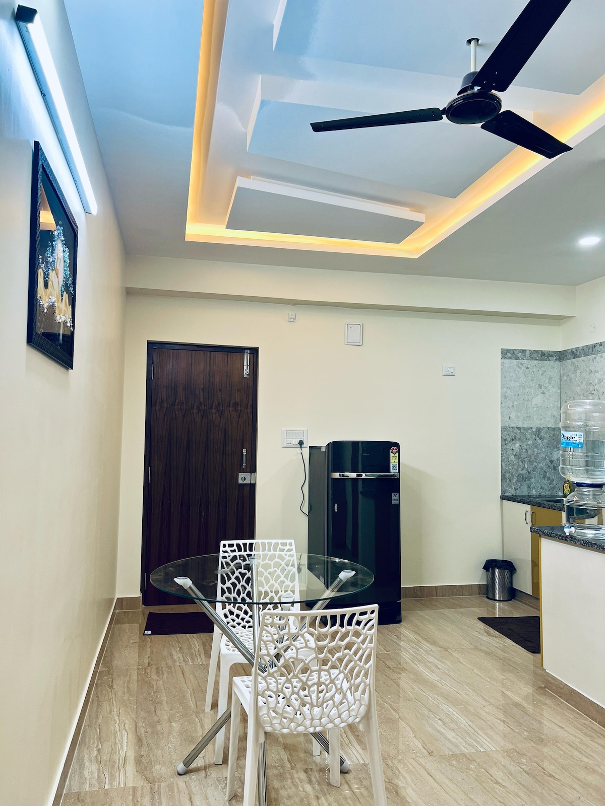 El 1BHK tiene un dormitorio acogedor y una amplia sala de estar con cocina privada, baño y balcón. Es un piso que no es AC. Se ubica en JP Nagar, a 1,5 km del centro comercial Meenakshi, Bannerghatta Road. El apartamento es amplio y puede alojar a 3 personas con una cama adicional. El apartamento tiene wifi exclusivo y una mesa de estudio, perfecta para profesionales del trabajo desde casa. El apartamento está en el tercer piso El departamento está situado en el centro del ajetreo de la ciudad. Relájate con toda la familia en este lugar tranquilo para hospedarte.