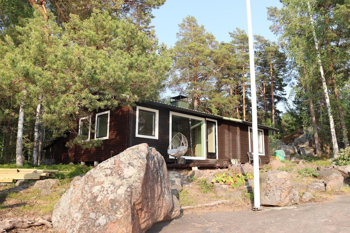 Relájate en un tranquilo paisaje rústico junto al estanque. Una pequeña casa de campo habitable en invierno adecuada para familias, parejas, un grupo de amigos, desde vacaciones hasta sauna por las noches. Casa de campo con cocina americana, loft, vestidor, sauna de madera e inodoro. Un entrante más natural en una playa apta para niños y una oportunidad de ganga. Tiene capacidad para un máximo de 6 personas. Cerca del arboreto de Mustila, estación de esquí, a 30 km de Kouvola, a 40 km de Loviisa, a 50 km de Kotka, a 110 km de Helsinki. Gran terreno para correr y bayas
