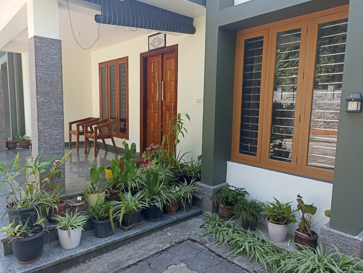 Bienvenido a nuestro alojamiento en casa de familia, un refugio inmerso en la encantadora belleza de Wayanad. Imagina despertarte con la suave lluvia y la brisa del monzón: una auténtica experiencia de Wayanad. Ubicado en medio de plantaciones de cardamomo, pimienta y café, nuestra casa familiar ofrece vistas panorámicas y cautivadoras fragancias de especias, lo que garantiza una estancia encantadora. Para llegar a nuestro retiro, disfruta de un viaje panorámico a través de las fincas de té de Wayanad. Sumérgete en la tranquilidad de nuestra casa familiar, donde el esplendor natural se combina con un ambiente hogareño y reconfortante.