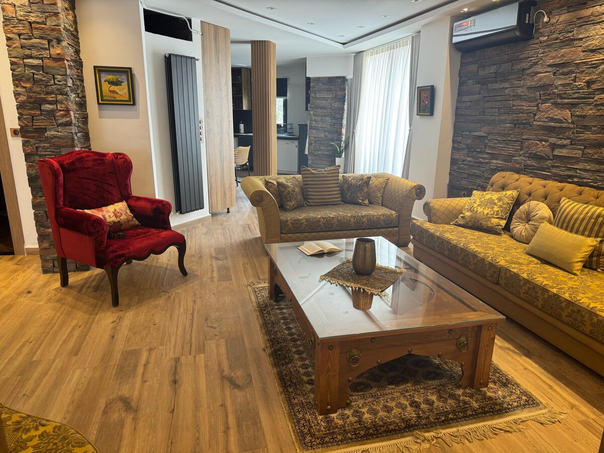 Appartement moderne de luxe à El Kouba, idéal pour 4 pers (possible +2enf). Au 3e étage avec ascenseur et sécurisé (badge,vidéosurveillance).Grand salon avec TV70" ,Wi-Fi, cuisine ouverte entièrement équipée (lave-linge,lave-vaisselle,four, micro-ondes). Deux chambres avec lits king-size , lits orthopédique, dressing; l'une avec TV50" . L'extérieur avec barbecue, table de jardin. Eau chaude 24h, parking gratuit, détecteurs de fumée et CO, trousse de secours. Logement non-fumeur, ambiance calme.