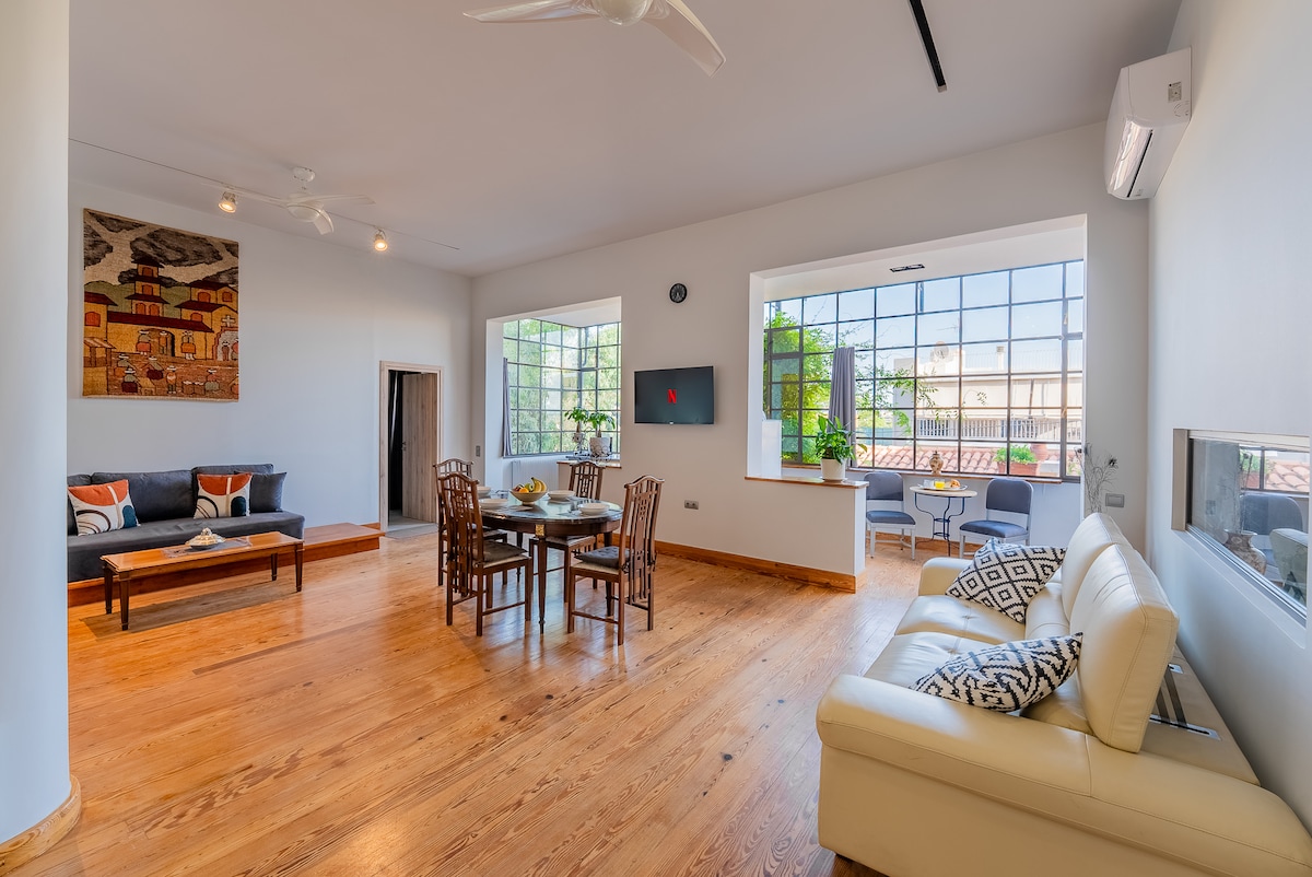 Experience contemporary Athens from this spacious 2-bedroom, 2-bath apartment in vibrant Koukaki, steps from the Acropolis and the city’s best cafés and galleries. Clean lines and calming tones create a serene retreat with a private balcony overlooking Filopappou Hill. In a building with an elevator Custom queen beds with linens, a sofa bed, climate control in every room, high-speed WiFi, and smart TVs. Walk everywhere, return to comfort, and enjoy the city with ease.