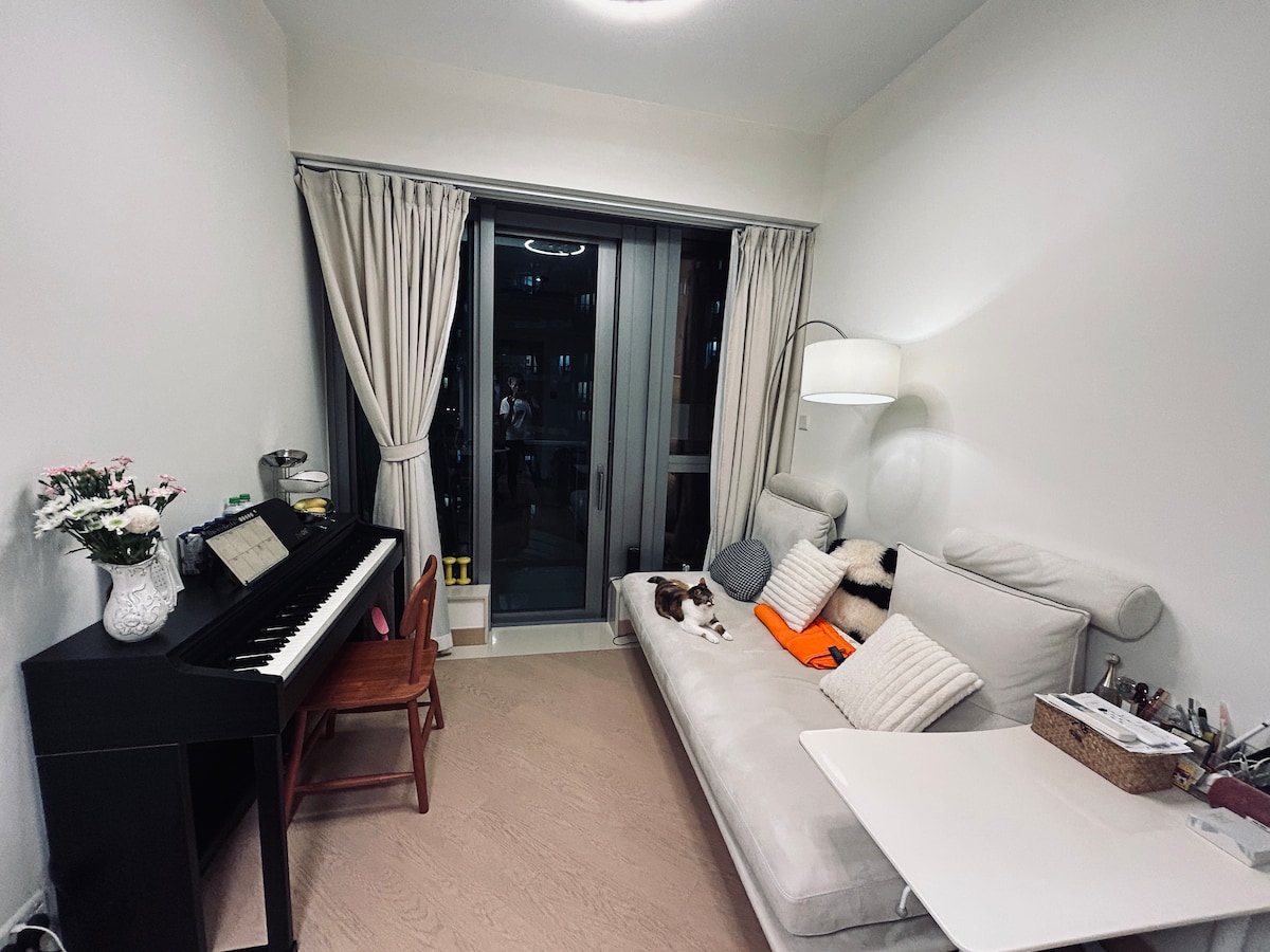 Ubicado a 5 minutos a pie de la salida B de la estación olímpica de metro de Hong Kong, supermercado fresco en la planta baja, farmacia, restaurantes, acceso directo a la estación de tren de alta velocidad de West Kowloon y acceso directo al metro de Disney. - Piso 30 con terraza con vistas al mar en el piso alto, buen ambiente, se puede proporcionar música, adecuado para cenar con amigos, fiesta, disfrutar de una buena noche. - La ropa de cama se cambia y limpia para cada huésped, y la habitación/espacio común es limpiada por una tía a tiempo completo para garantizar las condiciones sanitarias. - Actualmente, el gimnasio y la piscina son de uso gratuito, sujeto a aviso de la administración de la propiedad del edificio.
