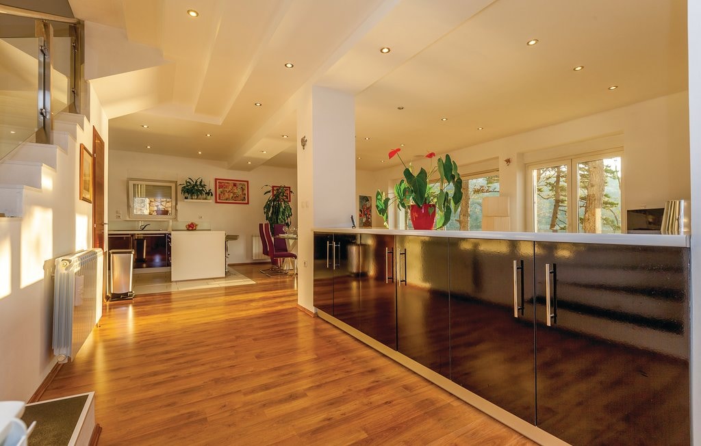 El apartamento está situado cerca del centro de la ciudad de Opatija, a solo unos minutos en coche o a ocho minutos a pie. Consta de una sala de estar, dormitorio, un comedor, dos baños, cocina, sauna, salón de espacio abierto, terraza, un jardín circundante y un estacionamiento. Gracias al hecho de estar en la planta baja con un jardín circundante, tienes la sensación de alquilar una casa y no un apartamento.