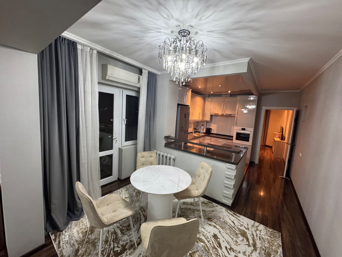 Welcome to a bright and elegant 75 sqm apartment in the heart of Tashkent, located in Akay City, featuring high ceilings, panoramic windows, and 24/7 security. The open-plan layout offers a stylish living room with a Smart TV and Netflix, a fully equipped kitchen, unique wooden furniture, underfloor heating, and filtered drinking water for your comfort. I’ll be happy to assist with the registration process at your expense, ensuring a smooth and pleasant stay.