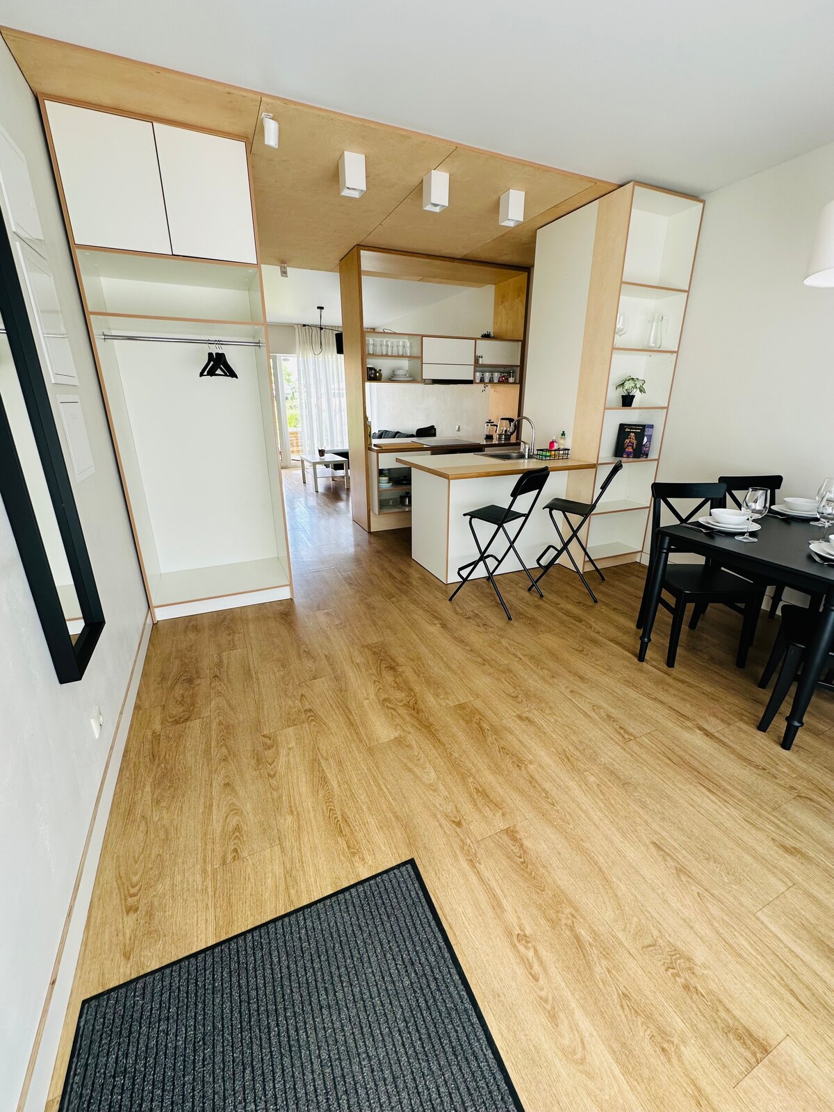 Nuevo, exclusivo, acogedor y luminoso apartamento de 3 habitaciones ubicado en una casa familiar, en una de las zonas más bellas y pintorescas de la ciudad de Sigulda: Kaķīškalns. El apartamento ha sido recientemente renovado con materiales de construcción ecológicos, modernos y fáciles de usar. Decoración interior de materiales naturales, principalmente cal y madera. Apartamento en una casa familiar con entrada independiente y total privacidad.