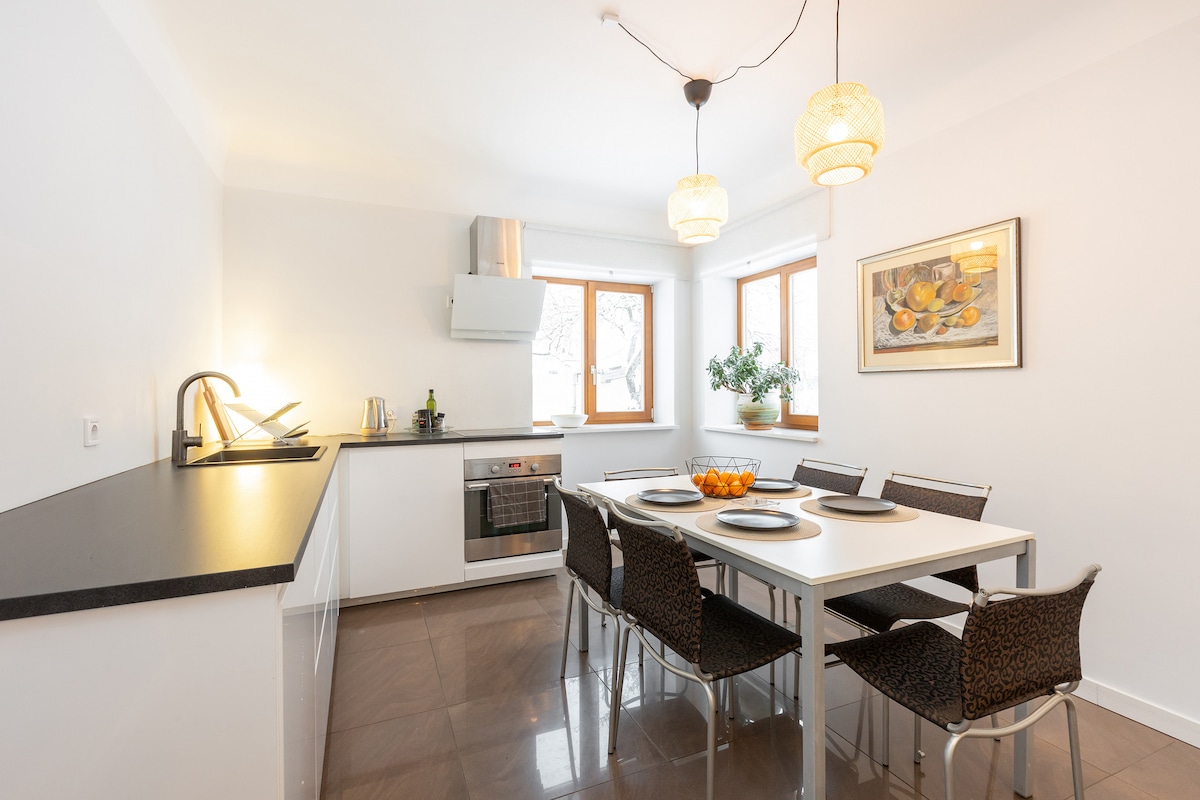 Disfruta de una escapada elegante, luminosa, tranquila y silenciosa en este lugar céntrico. Justo en el centro de Sigul, pero con un bonito cenador en el lado del patio para sentarse en las noches cálidas. A la estación 1 min. Apartamento recién reparado, ordenado y limpio. Registro de entrada autónomo a cualquier hora del día.