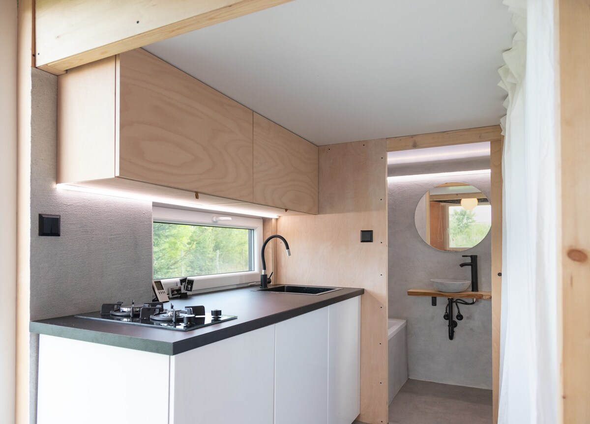 Hola, me llamo Tiny, soy una casa sobre ruedas y Nikča me construyó por su cuenta. ¡Todo el día estoy rodeado de naturaleza y tengo una hermosa vista del lago! Cucos y faisanes me despiertan todas las mañanas. Vivo en armonía con la naturaleza, así que estoy completamente fuera de la red. Atraigo energía del sol, que no es escasa aquí. También tengo un tanque que contiene 200 litros de agua. Soy una casa pequeña, pero por lo demás una casa de pleno derecho de por vida.