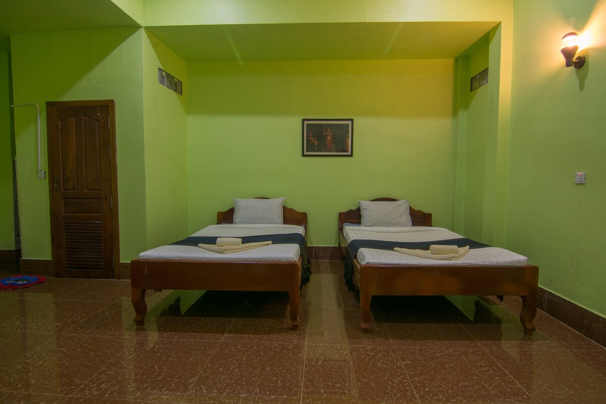 Los valiosos huéspedes obtendrán la espaciosa habitación doble ( 2 camas individuales) con aire acondicionado y amenidades amistosas, y baño privado, limpieza diaria de la habitación, la mejor ubicación de la ciudad, a 3 minutos a pie de la calle Pub, mercados locales.