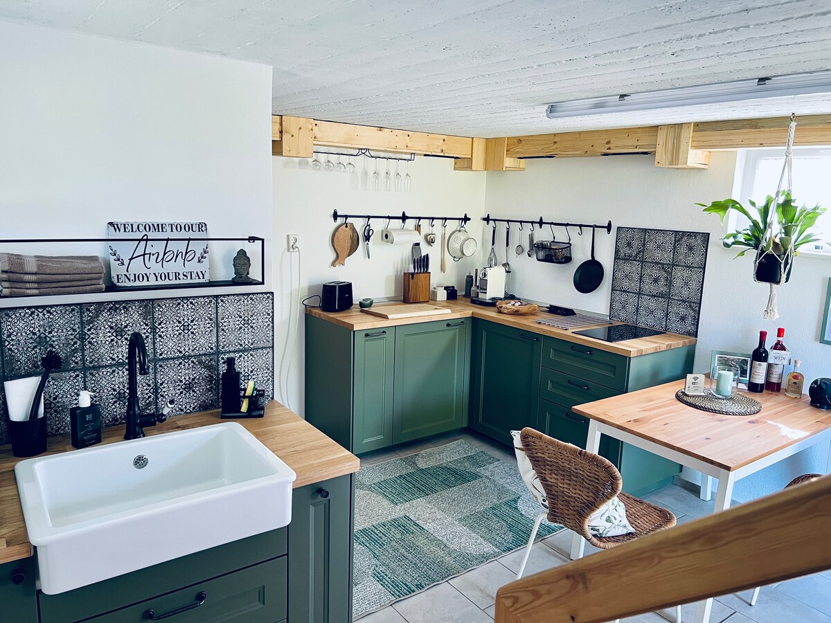 Una pequeña casa romántica enclavada en un entorno idílico, directamente en el Camino de Santiago. Aquí, puedes relajarte en una hamaca con vistas a los verdes y ondulantes viñedos. La casa ha sido restaurada con cariño y amueblada con estilo. Le esperan una paz y tranquilidad ininterrumpidas, no muy lejos del centro de la ciudad histórica más pequeña de Eslovenia, por ejemplo, deportes acuáticos en el río Krka o una visita al monasterio cercano. La casa tiene una estufa de leña, disponible para reservar durante todo el año.