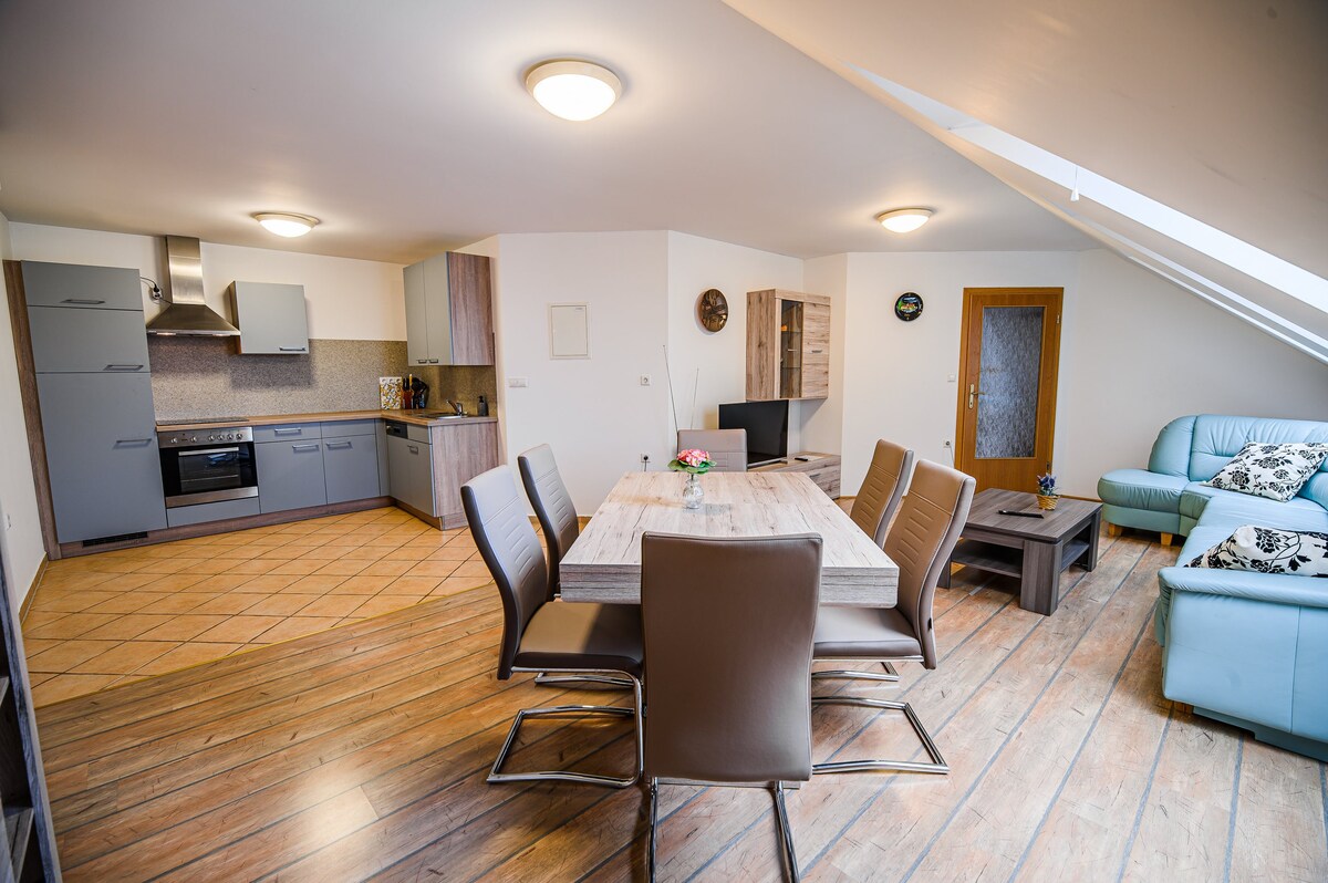 El apartamento Rimljanček se encuentra cerca de la salida de la autopista Drnovo. Es una gran base para visitar los balnearios locales Terme Čatež o Terme Paradiso. Hay dos apartamentos disponibles que ofrecen una estancia cómoda para un máximo de 9 huéspedes en uno y un máximo de 5 huéspedes en el otro. Hay 3 dormitorios, una sala de estar, una cocina y un baño privado en el apartamento más grande y dos dormitorios con sala de estar, kithen y un baño privado. Hay estacionamiento privado y los huéspedes tienen acceso a wifi gratuito en toda la propiedad.