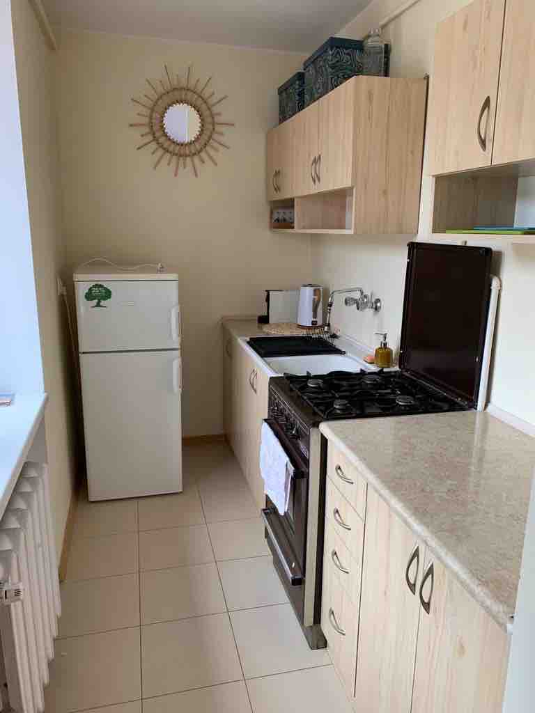 El apartamento en planta baja tiene una superficie de unos 40 m2 y puede alojar hasta 4 personas. Entraremos desde la planta baja desde el estacionamiento. Cuenta con salón con sofá cama, cocina americana con comedor, baño con cerradura independiente. Dormitorio con cerradura independiente con cama matrimonial. Además, el apartamento cuenta con una secadora de pelo, un armario y una cómoda. Se proporcionan sábanas. No proporcionamos toallas por razones de higiene. El alojamiento incluye aparcamiento privado gratuito.