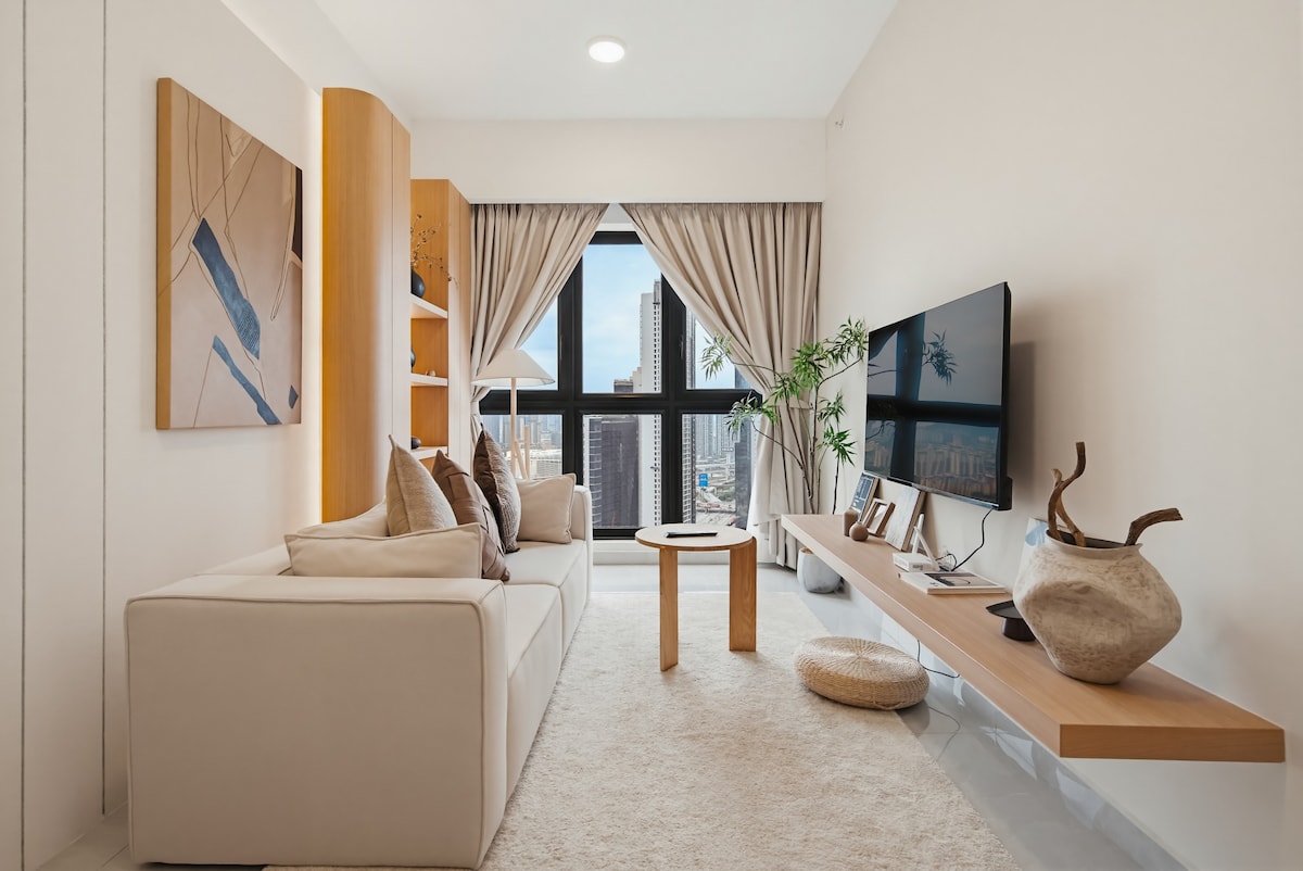 Te damos la bienvenida a nuestro santuario del horizonte 🌇✨ Subiendo por encima de la ciudad en el último piso, este espacioso refugio de 3 dormitorios ofrece vistas panorámicas del brillante horizonte de Kuala Lumpur. Perfecto para familias y grupos de hasta 8 personas, es una escapada elegante y llena de luz a solo 10 minutos a pie de KLCC. Ya sea que estés tomando café al amanecer o bañándote por las luces de la ciudad, la vista siempre es el evento principal.