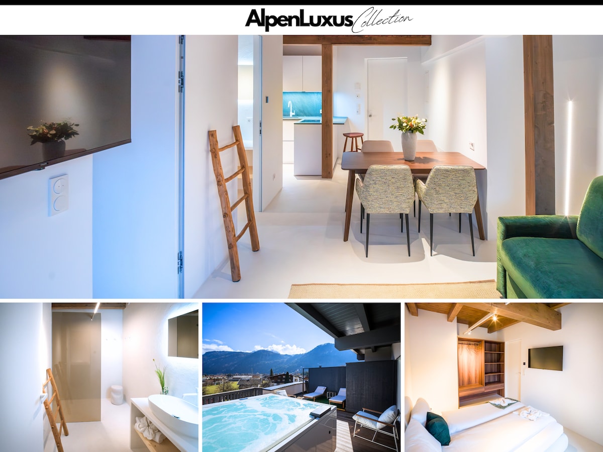 El ático n.º 3 combina un diseño moderno con un toque alpino. Disfruta del exclusivo jacuzzi en la azotea rodeado de un impresionante paisaje de montaña. Mobiliario de alta calidad, habitaciones inundadas de luz y un equilibrio perfecto entre elegancia y cercanía a la naturaleza hacen que este ático sea único. Un refugio para conocedores: ¡el lujo se encuentra con la sostenibilidad!