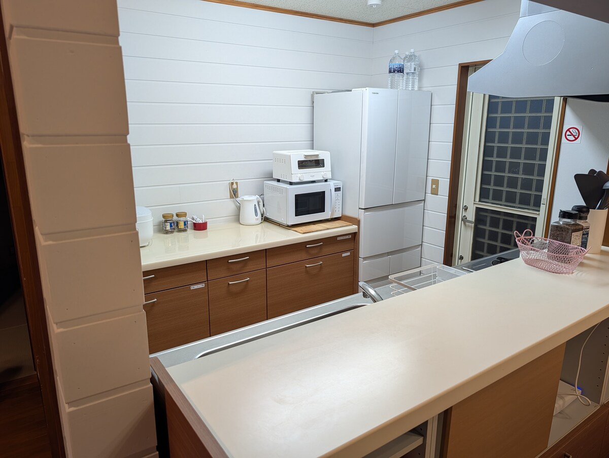 Renovamos la antigua casa donde nuestra abuela solía vivir con nuestras propias manos tanto como fuera posible. La playa de Kujukuri, que está a pocos pasos, es un lugar donde familiares y amigos se han reunido durante mucho tiempo. Una vez más, quería que fuera un lugar lleno de sonrisas como en esos días, y he cogido un poco mis manos. Ahora, también hay wifi de fibra óptica de alta velocidad y una sauna, lo que lo convierte en un espacio relajante para familias, parejas y amigos. Uno de los encantos de la casa es que los gatos que viven cerca visitan casualmente el jardín. Para aquellos que quieren disfrutar de un tiempo tranquilo junto al mar, esta es la ubicación perfecta. Alfombrillas de yoga, masajeadores de pies, sillas plegables, carritos, 2 bicicletas, juegos de cajas de arena, juguetes para niños, sillas, asiento auxiliar de inodoro, libros ilustrados, tiendas de campaña colgantes y mucho más. También estamos disponibles para hablar sobre estadías más largas, así que no dudes en ponerte en contacto con nosotros. También ofrecemos descuentos especiales para tu uso de vacaciones de trabajo. Es tenue para que puedas dormir muy bien.Es posible que no estés en el trabajo. Les deseo un momento de paz por naturaleza.