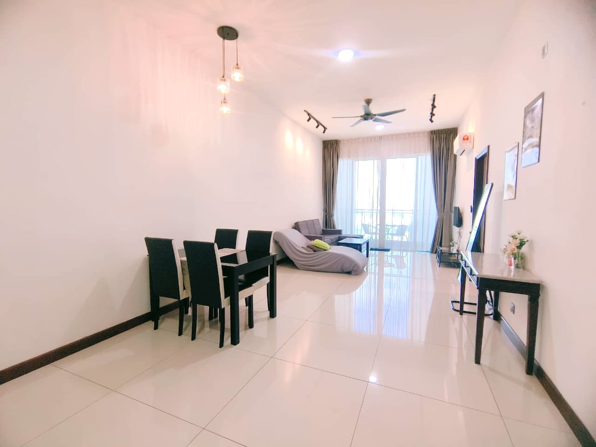 Situado en Taman Sentosa, con fácil acceso al centro comercial Midvalley Southkey y a la ciudad de JB. Unidad de 4 dormitorios con camas tamaño queen premium (colchón King Koil) con capacidad para 9 personas. Rodeado de centros comerciales y una amplia variedad de sabrosa comida local: - A 2 minutos de Hai Kah Lang. 海脚人 - A 5 minutos del centro comercial Mid Valley Southkey. - A 7 minutos del centro comercial KSL City. - A 10 minutos del centro comercial City Square. - A 12 minutos de JB Sentral. Disfruta de la película con nuestro televisor inteligente de 65 pulgadas equipado con caja de TV (no se proporciona acceso a Netflix). Aparcamiento gratuito para 4-5 coches.