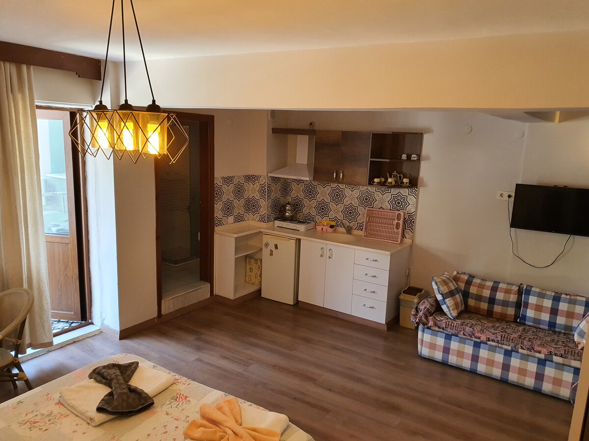 Apartamento limpio y confiable en el centro de Kuşadası. Está a 70 metros del mar y está justo al lado de todos los cafés (Starbucks Cafe y Roberto Cafe, etc.) y muchas más tiendas. Se puede llegar al puerto deportivo en unos minutos. Nuestra casa tiene Internet ilimitado (wifi) y aire acondicionado.