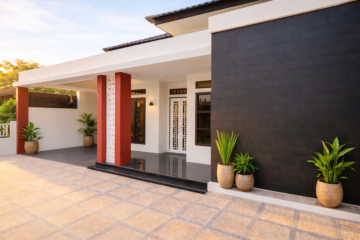 ¡Te damos la bienvenida a Banda Aceh! Esta casa cuenta con tres cómodos dormitorios y una amplia sala de estar con capacidad para ti y tu familia o amigos. Servicios: 1. Agua caliente y artículos de aseo (champú, gel de baño, cepillo de dientes y pasta de dientes) 2. Cuidado personal (peines, gorro de ducha, secador de pelo) 3. Café y té. 4. Caja de pañuelos 5. Toallas y zapatillas 6. Wifi gratuito y Netflix 7. Aparcamiento gratuito. Además de estos, para estancias más largas ofrecemos servicio de limpieza gratuito cada dos noches.