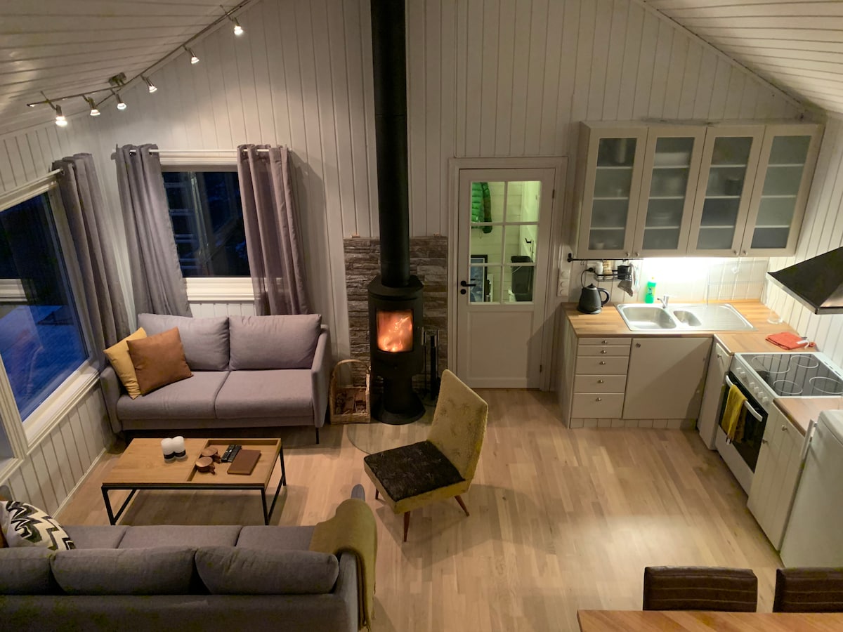 Cabaña con sala de estar, cocina y baño. Un dormitorio con cama matrimonial y loft con colchones. Sofá cama en la sala de estar. Capacidad para 3-4 personas Cables de calefacción en los pisos y leña. Wifi. A poca distancia de Reisaelva, las montañas y el mar, y las pistas aprobadas para motos de nieve. Puedes experimentar el trineo de perros en un desierto virgen bajo un cielo lleno de las luces del norte. Consulta la información en las guías. Si quieres cocinar al aire libre o simplemente disfrutar del silencio alrededor del fuego, aprovecha nuestra barbacoa en la azotea en Reisaelva.