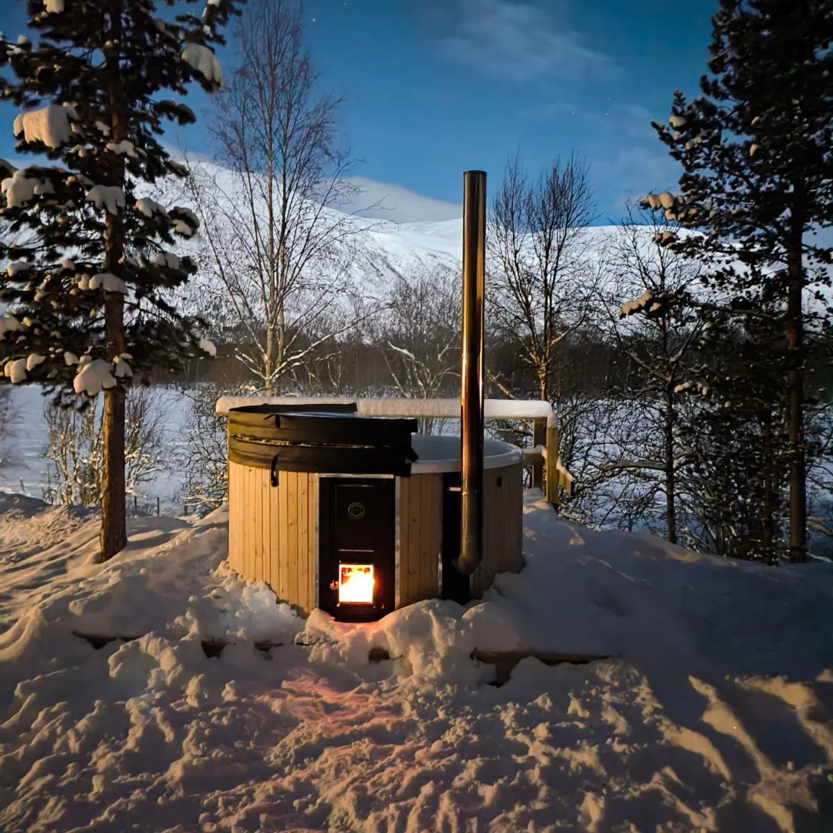 Cabaña de la aurora boreal con jacuzzi y playa privada