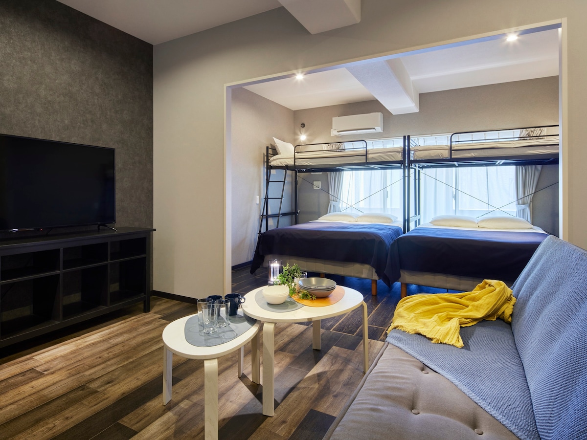 Esta habitación tiene capacidad para 6 personas con 2 camas individuales, 1 sofá cama y 3 juegos de futones. Puntos recomendados ■Convenientemente ubicado a pocos pasos de la estación Sanjo y Sanjo Keihan para hacer turismo ■Mantente sin llave con cerradura inteligente Hay utensilios de cocina, horno microondas en la■ cocina. Totalmente equipado con■ lavadora y secadora para estadías largas y viajes de negocios * Otros servicios * Purificador de aire, Aire Acondicionado, Secador de cabello, Champú, Acondicionador Jabón corporal/ganchos Acceso Salida 1 2 minutos de la estación de metro Sanjo Keihan Estación de tren Keihan Sanjo a 4 minutos a pie